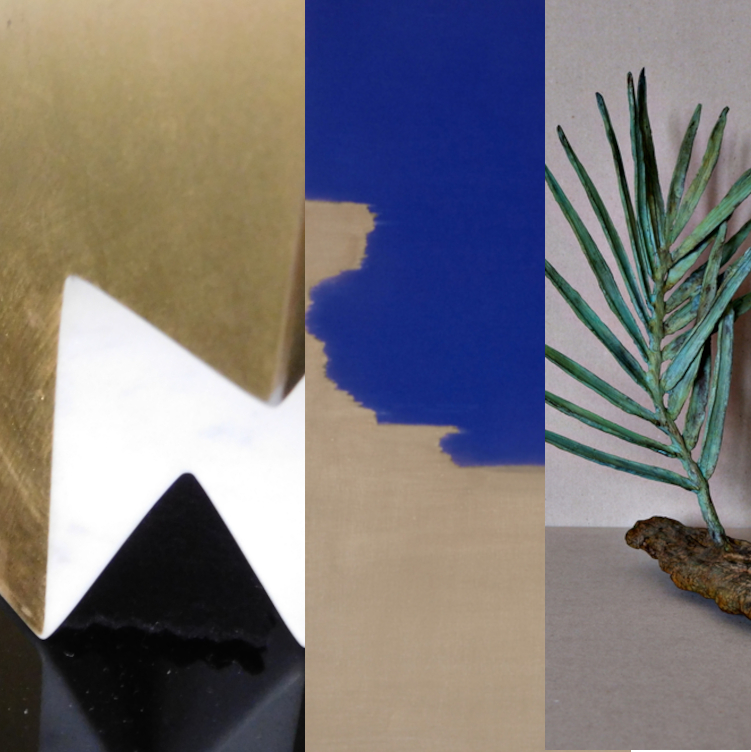 Image: details of F. Carone, Dioniso, 2016; E.Vanni, Tela su stoffa: lino dipinto su stoffa blu, 2021; S. Ko, Una barca, 2023.