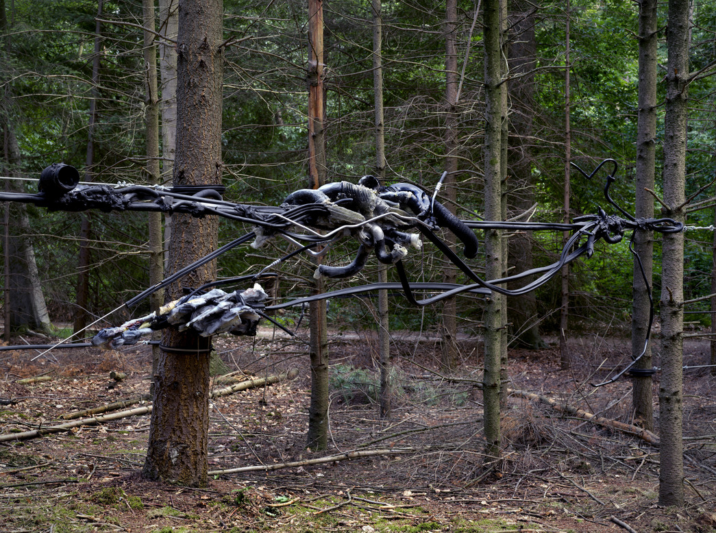 Opere di Neil Beloufa e Giulia Cenci sono esposte nella mostra Hybrids, a cura di Chris Driessen e David Jablonowski, a Lustwarande, Tilburg, aperta fino al 23 settembre 2018. (credito fotografico Gert Jan van Rooij)