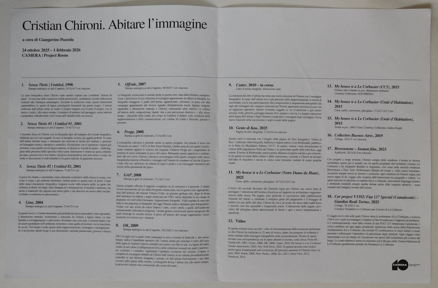 Foglio di sala della mostra omonima presso Camera, Project room, a cura di Giangavino Paz-